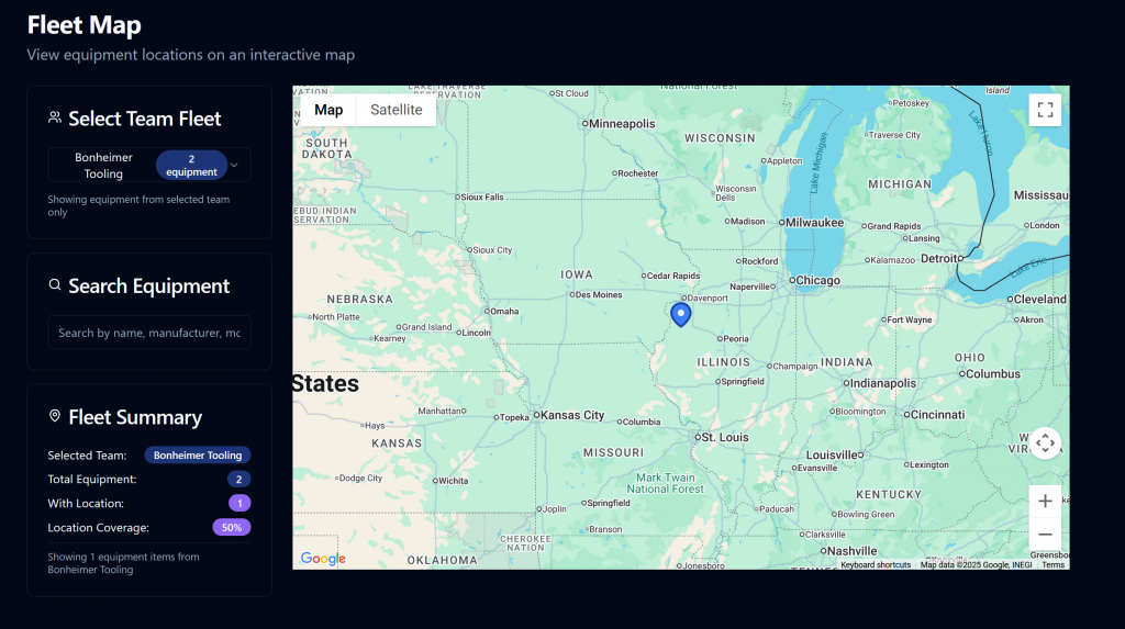 See the last known location of each asset in your organization on a map. You can filter by team / customer to drill down further as well.