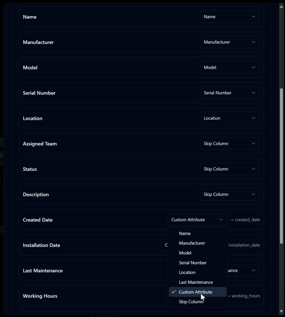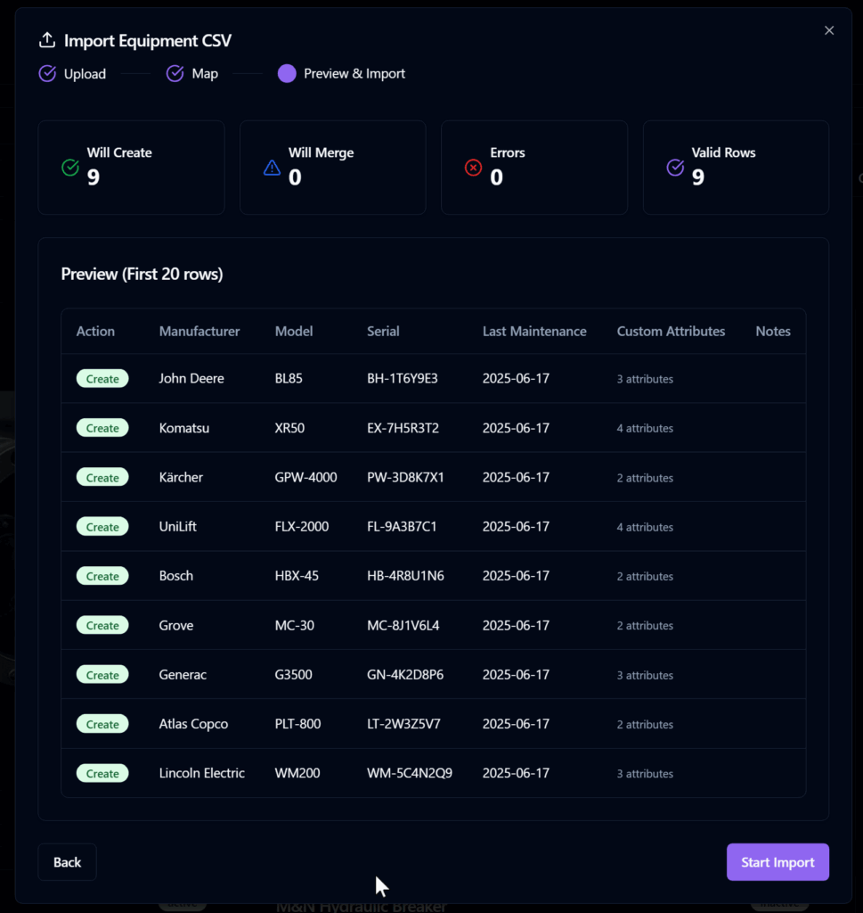 Whether you manage 1 asset or 10,000, you can upload an Excel spreadsheet containing every single thing you know about each machine.