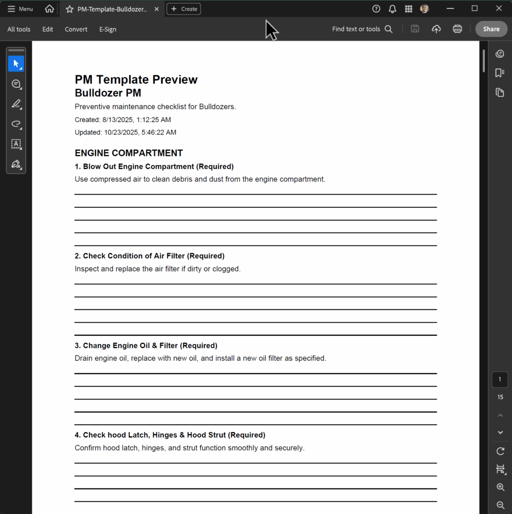 Prefer paper? EquipQR also lets you print any checklist as a PDF, perfect for technicians who still work best with a clipboard in hand. Simply hand them the forms, then have your office staff record results digitally afterward.